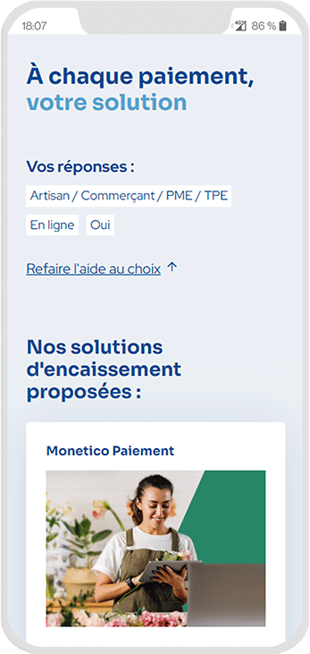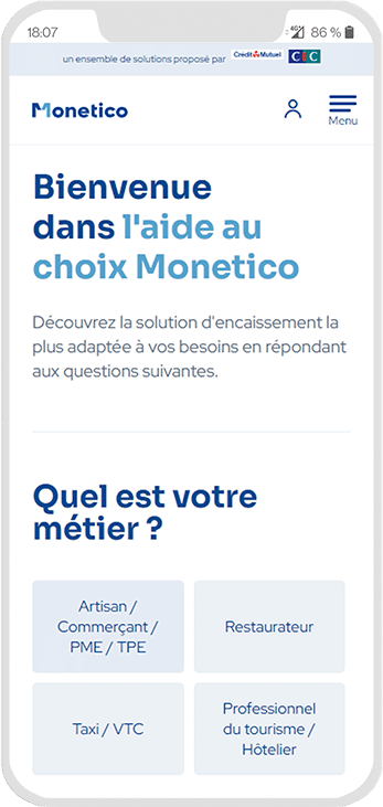 Monetico est une plateforme de paiement sécurisée qui permet aux professionnels d’accepter des paiements par carte bancaire, que ce soit en ligne, en magasin ou en mobilité.